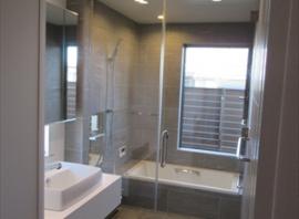 浴室の床壁はタイル貼りで、ドアは強化ガラスです。