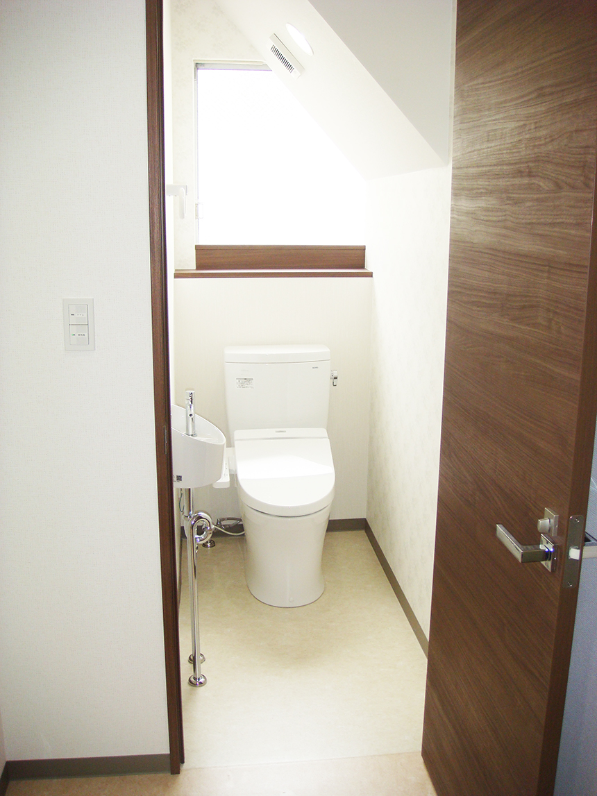 階段を玄関ホールに面するよう間取りを変更し、2階に新しく事務所を計画
